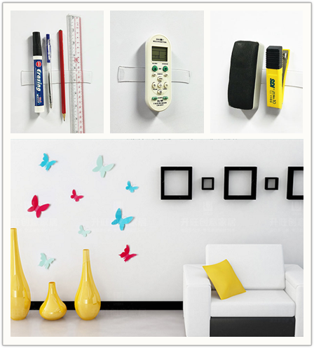 亞克力的無痕雙面膠:水洗次數有限,每次水洗粘力減30%,短期不留膠痕,粘力強,不環保,價格便宜。